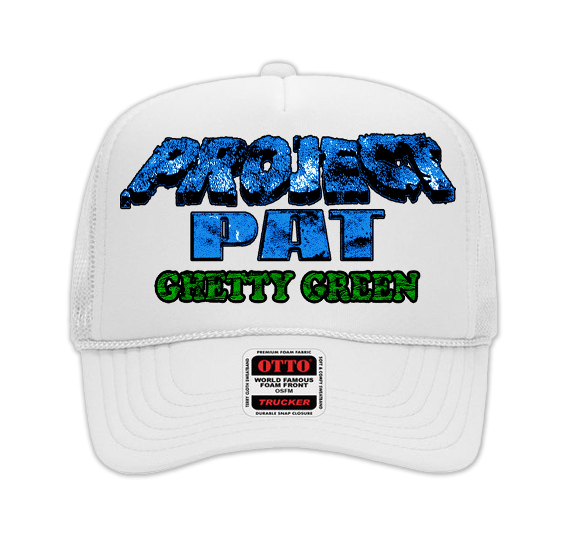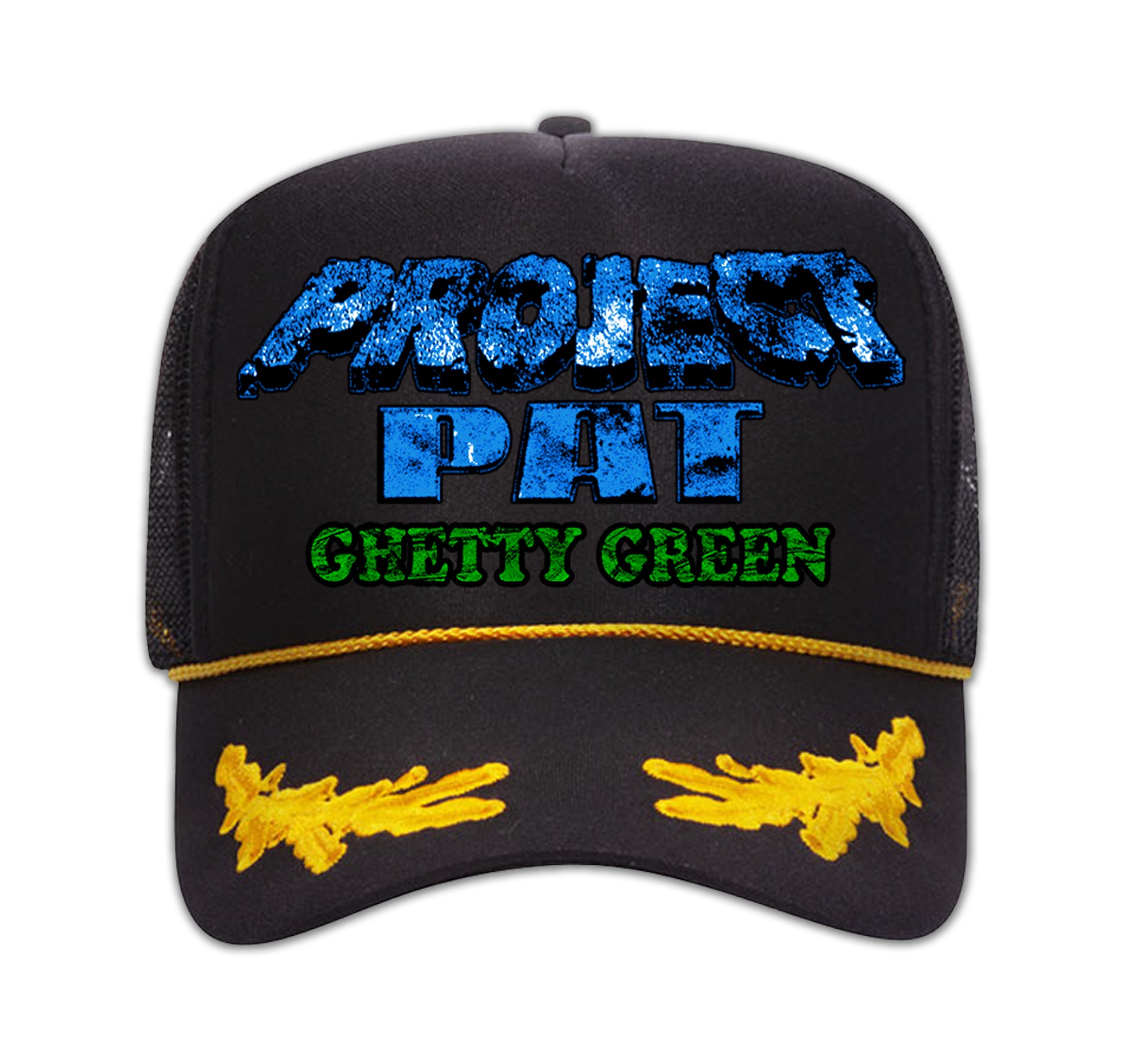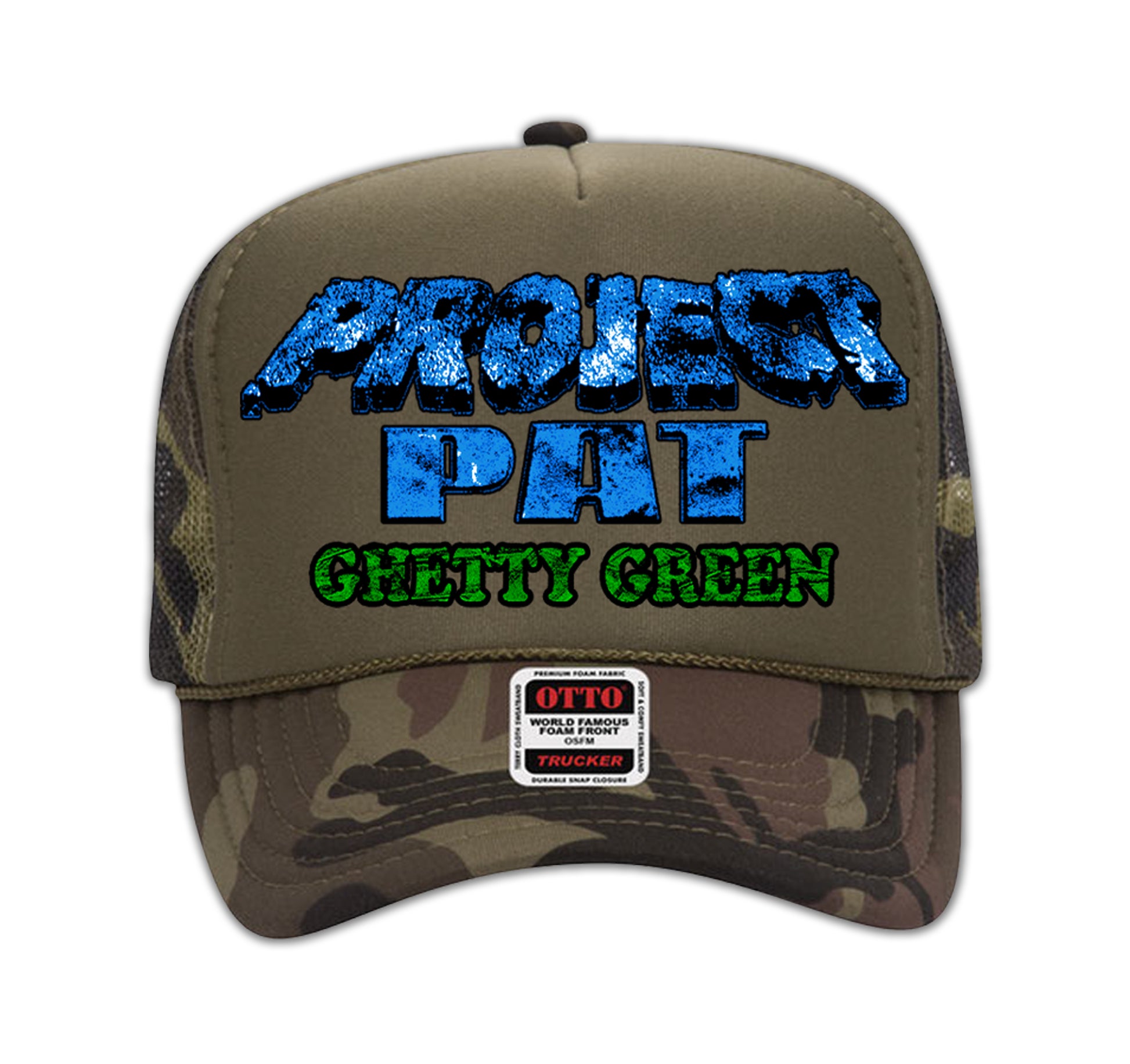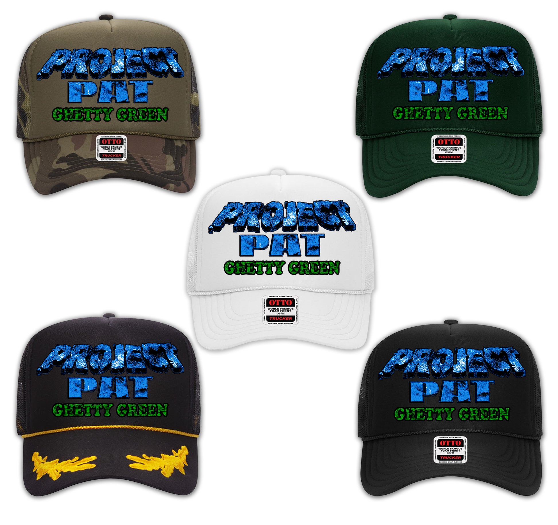Embroidered on Atonal Headwear (black dad hat & unstructured), Cobra Caps (rope & bucket), and Yupoong (camo dad).
